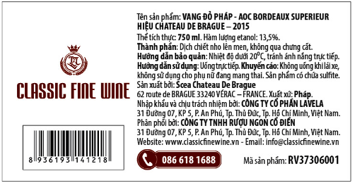 AOC Bordeaux Superieur - CHATEAU DE BRAGUE 2015