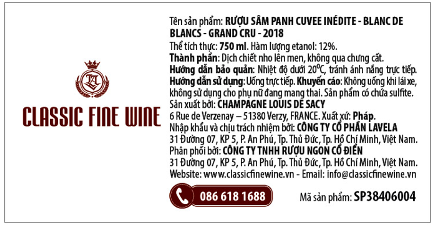 Cuvee Inédite Blanc de Blancs Grand Cru 2018 là rượu champagne đơn nho (100% Chardonnay) của vùng Vezry, một làng trồng nho ở khu vực Montagne de Reims nơi được phân loại “Grand Cru” (có nghĩa là sản phẩm từ những vườn nho cực tốt).